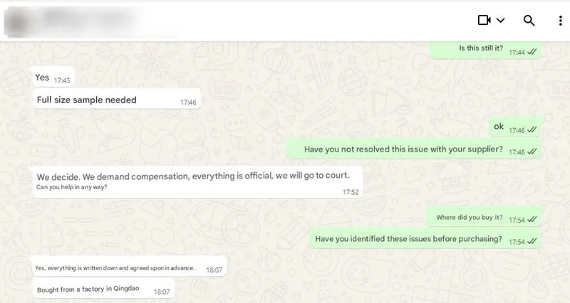 Недавно смо сазнали да је купац наишао на озбиљне проблеме са наруџбом цераде од конкурента. Њих је намамила ниска цена, а фабрици је на крају требало два месеца да заврши производњу. Након испоруке, открили су да производ није на лагеру и да није у величини за коју су се првобитно договорили. Купац тренутно разматра правни поступак. Испод је транскрипт моје комуникације са овим клијентом.